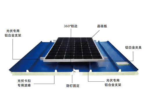 圍繞著MAA低碳節(jié)能光伏屋面板在節(jié)能建筑的安裝應用問題,開發(fā)岀一種集保溫節(jié)能與太陽能利用于一體的多功能屋面系統,該系統采用特殊設計的MAA低碳節(jié)能光伏屋面板作為屋面承重。可選芯材:MAA低碳節(jié)能防火保溫芯材。